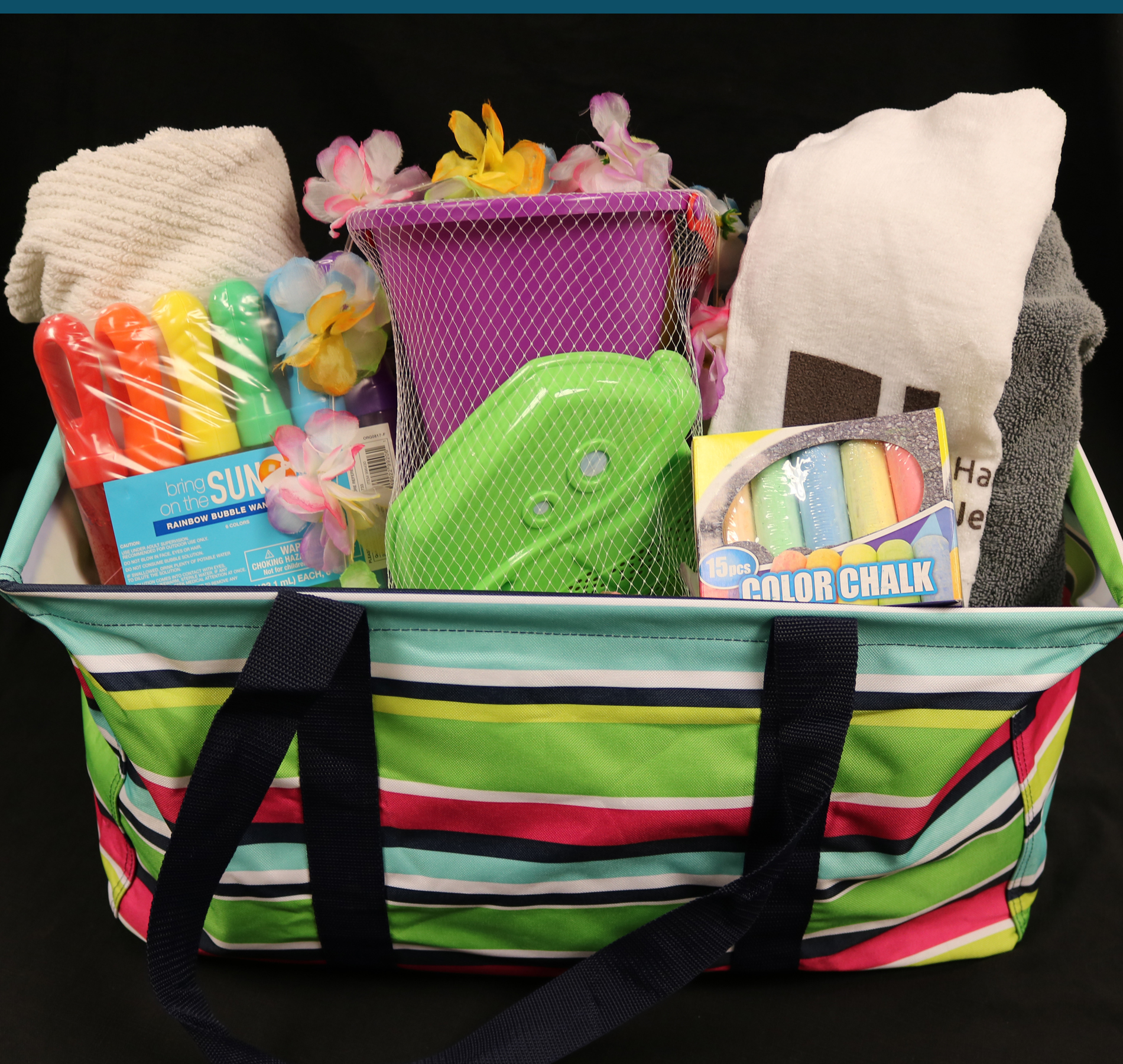 Up to 18 kids, Party Hosts, Cheese Pizzas, drinks and more. Packaged in a Thirty-One large utility tote in preppy pop design.
